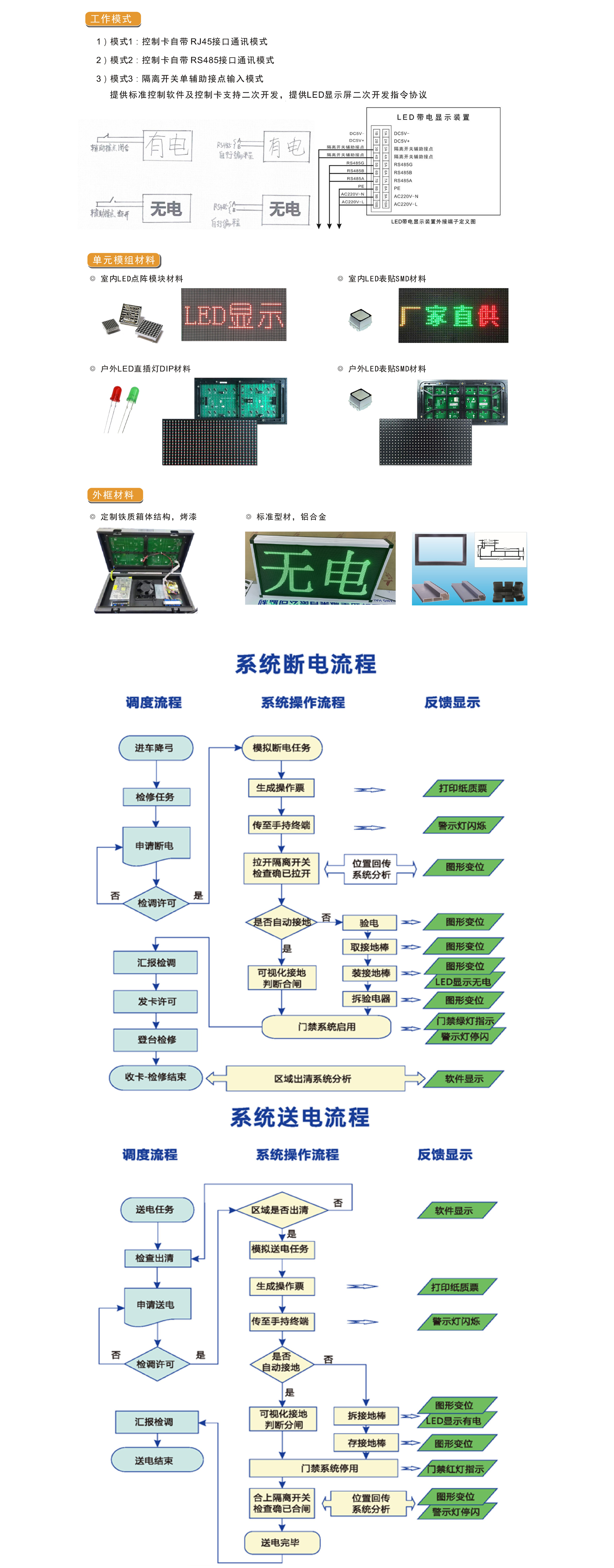 通过RJ45、RS485、RS232、开关闭合点播功能通讯,实现隔离开关分合操作,接触网验电接地操作,平台门开关操作之间的紧密联锁关系,支持二次开发提供开发通讯协议,客户自行开发连接安全联锁管控等系统,LED有无电显示装置,主要提醒显示相关股道接触网有电无电状态。