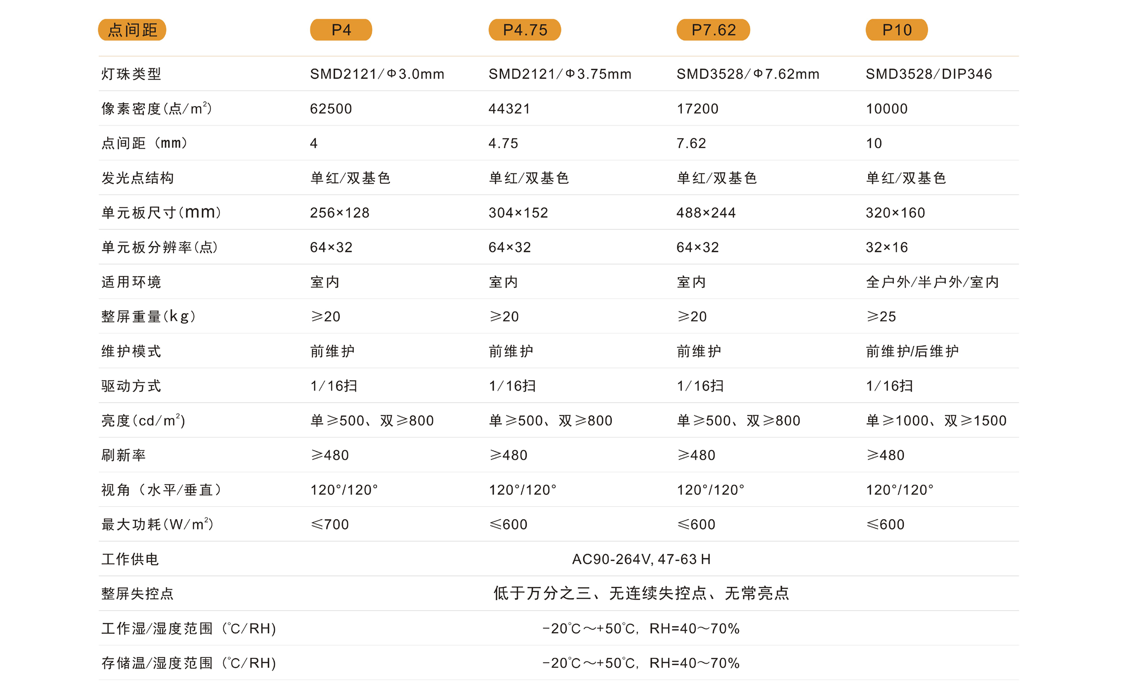 室内单基色/双基色显示屏主要型号PH4mm(Ф3.0mm)、PH4.75mm(Ф3.75mm)、PH7.62mm(Ф5.0mm),PH10mm;